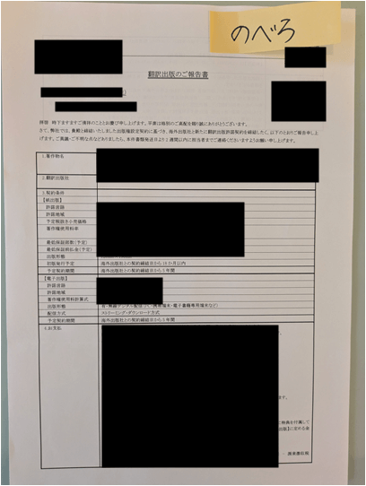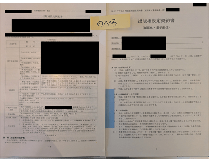 出版社によって契約書の様式は違います。電子契約で紙の契約書がない会社もありました。