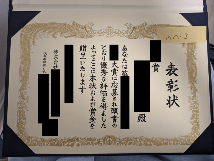 新人賞を受賞すると、こんな風に楯や表彰状が貰えます。